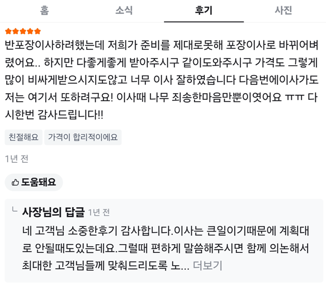 고객님들 견적시 이동해야 할 물건에 대해서 최대한 꼼꼼하게 알려주시길 바랍니다.